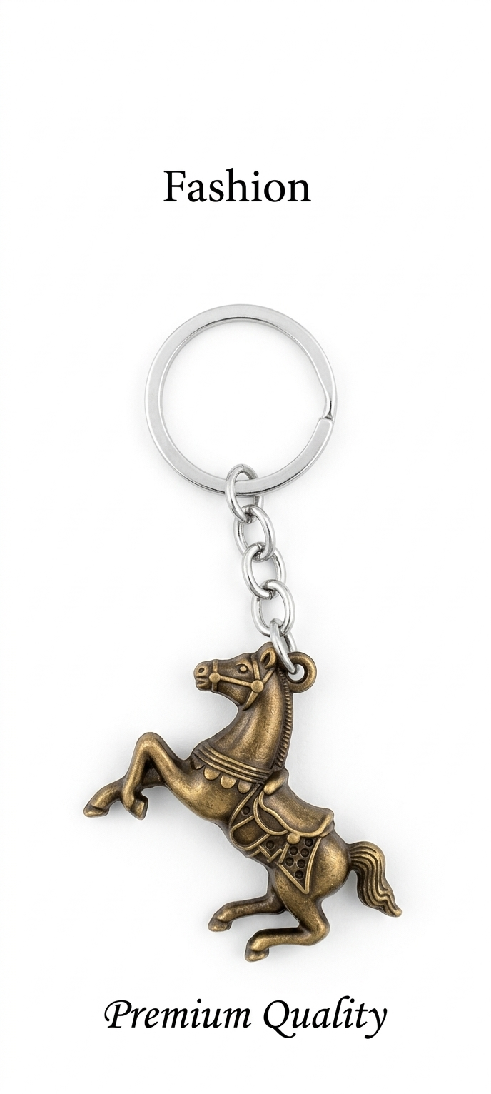 This metal horse keychain is made from high-quality alloy material that ensures long-lasting durability. The strong key ring and sturdy chain keep your keys secure at all times. The antique bronze finish gives it a classy vintage look that stands out from regular keychains.