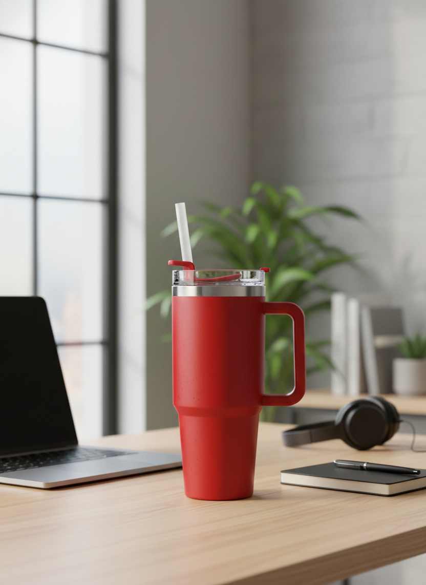 Finished in a bold red matte coating, this tumbler combines durability, functionality, and modern design—making it a reliable companion for your everyday hydration needs.
